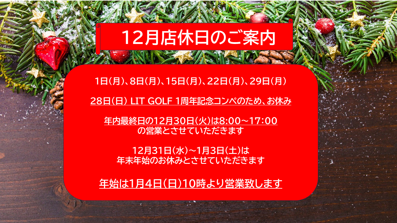 28日(日)は、LIT GOLF 1周年記念コンペを開催させていただきますので、この日もお休みとなります