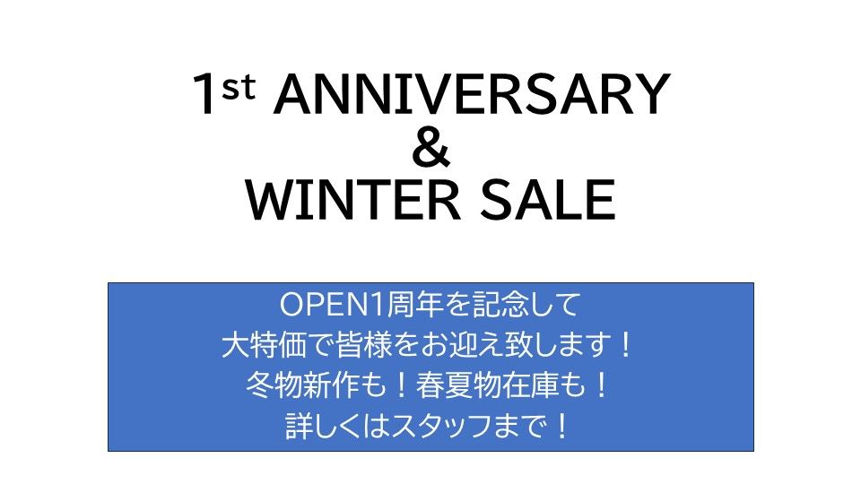 1st ANNIVERSARY & WINTER SALE 開催中!